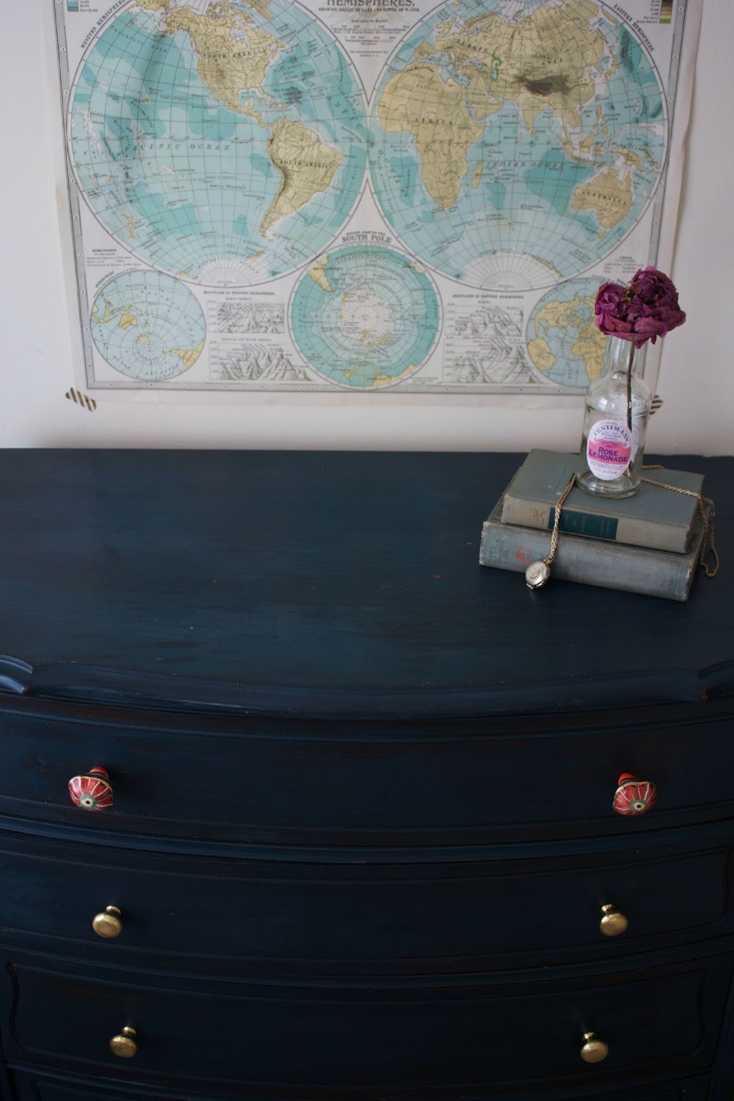 I recently moved to a new place in the DC Metro Area and its been hectic getting settled in to the say the least. My inaugural furniture project is this stunning dresser I found at Goodwill painted in Miss Mustard Seed's Artissimo, a gorgeous indigo blue that should immediately be added to my Swoon List.